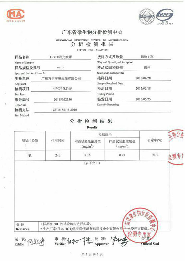 • 中國(guó)廣州分析測(cè)試中心甲醛分解測(cè)試報(bào)告