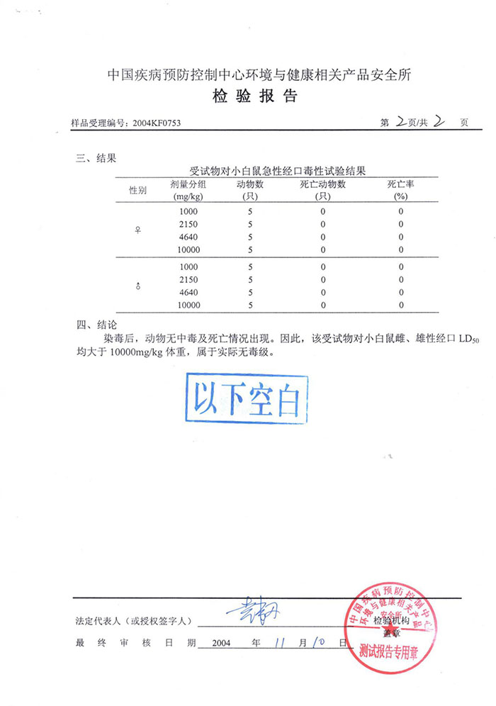 • 中國(guó)疾病預(yù)防控制中心毒性檢驗(yàn)報(bào)告
