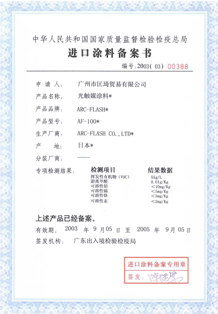 • 國(guó)家質(zhì)檢總局進(jìn)口涂料備案書