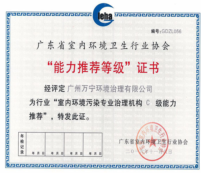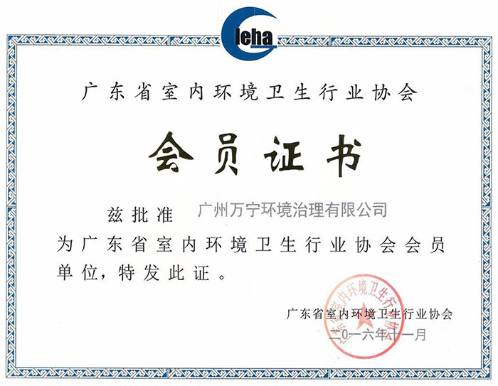 • 廣東省室內(nèi)環(huán)境衛(wèi)生協(xié)會(huì)證書
